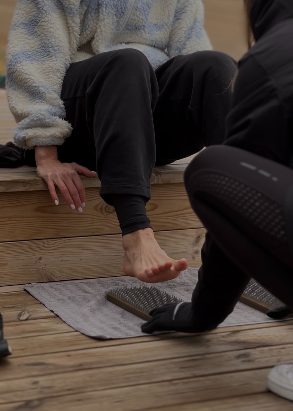 Aštrūs taškai spaudžia pėdų zonas, kuriose yra daugybė nervinių galūnių ir refleksinių taškų. Šis spaudimas aktyvina kraujotaką, nervų sistemą.